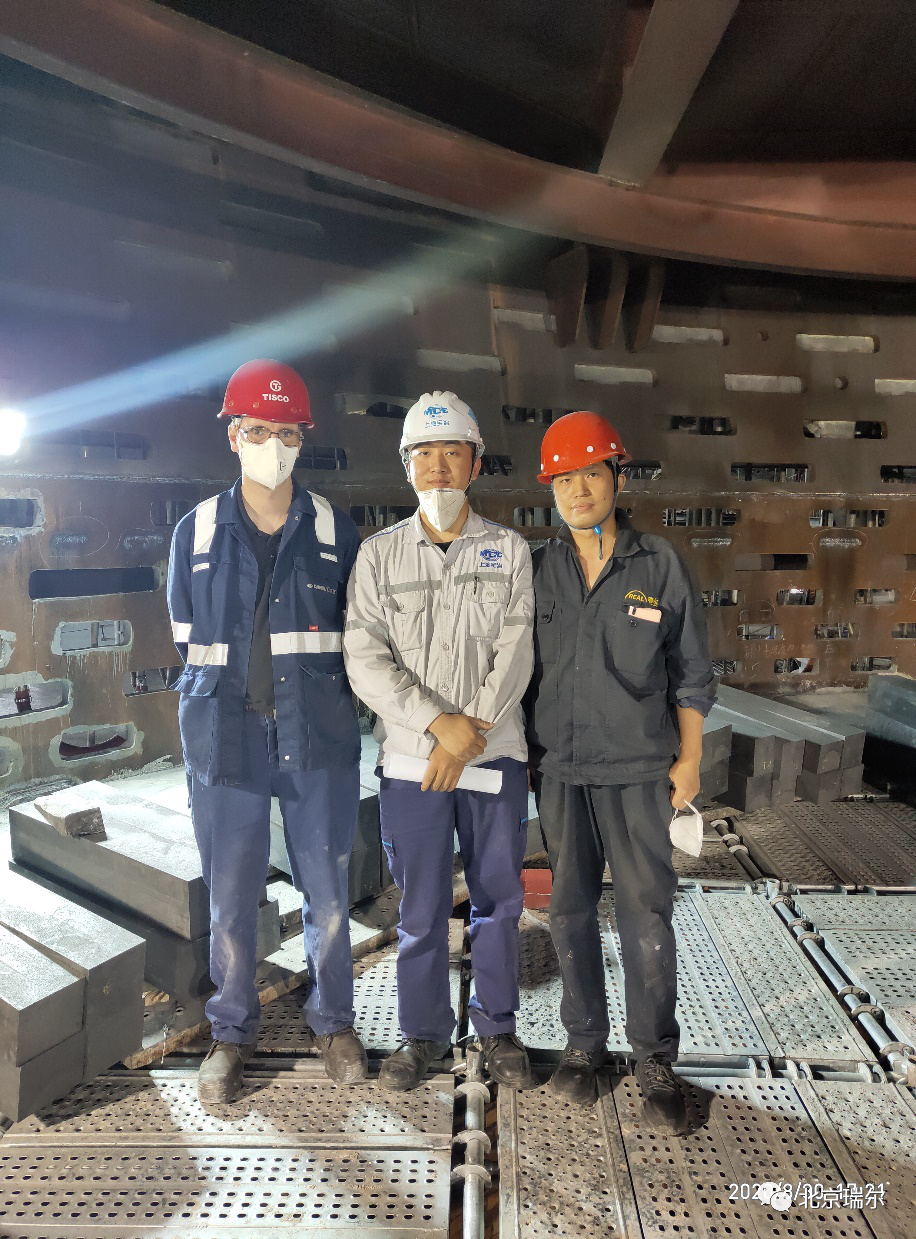 太鋼高爐的陶瓷杯采用的是瑞爾的全球合作伙伴法國圣戈班公司的陶瓷杯壁產品。由于疫情不可抗力因素影響,導致外方的砌筑指導人員無法按照原計劃到達現場提供砌筑技術服務。面對這一意外狀況,已經合作過多次的瑞爾與圣戈班經過協商,認為瑞爾的技術人員對圣戈班的產品也已經非常了解,因此由瑞爾派出的現場技術人員完成該產品的砌筑指導工作。最終瑞爾的技術人員出色地完成了國外陶瓷杯壁產品部分的砌筑指導任務。